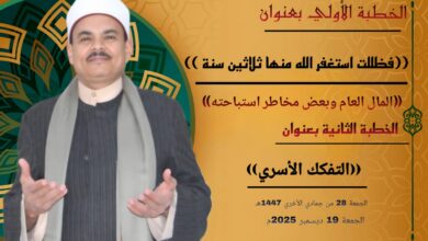 خُطْبَةُ الجُمُعَةِ القَادِمَةِ: (فَظلَّلتُ أَستَغفِرُ اللّهَ مِنها ثَلاثينَ مَرَّةً) د. مُحَمَّدُ حِرْزٍ بِتَارِيخِ 28 جُمَادَى الأُخْرَى 1447هـ – 19دِيسَمْبَرَ 2025م…