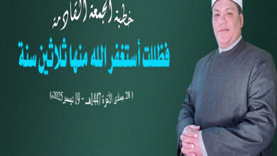 خطبة الجمعة القادمة «فَظَلِلْتُ أَسْتَغْفِرُ اللهَ مِنْهَا ثَلَاثِينَ سَنَةً» الدكتور محمد داود – بتاريخ 19 ديسمبر 2025م ، الموافق 28…