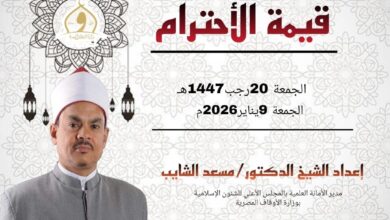 خطبة الجمعة بعنــــــوان: قيمة الوقت في حياة الإنسان للدكتــــور / محمد حســــــن داود (13 رجب 1447هـ – 2 يناير 2026م)…